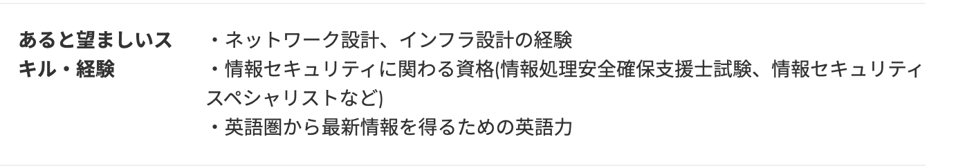 中途採用に関してはセキュリティ関連のポジションで必須ではない歓迎条件として書かれる常連資格になっています。
