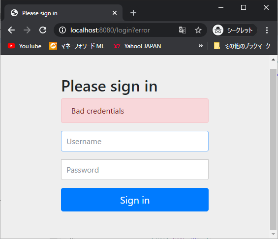 今回まではSpringSecurityでデフォルトで用意されているログイン画面を使いましたが実務ではログイン画面は自作することが多いと思います。