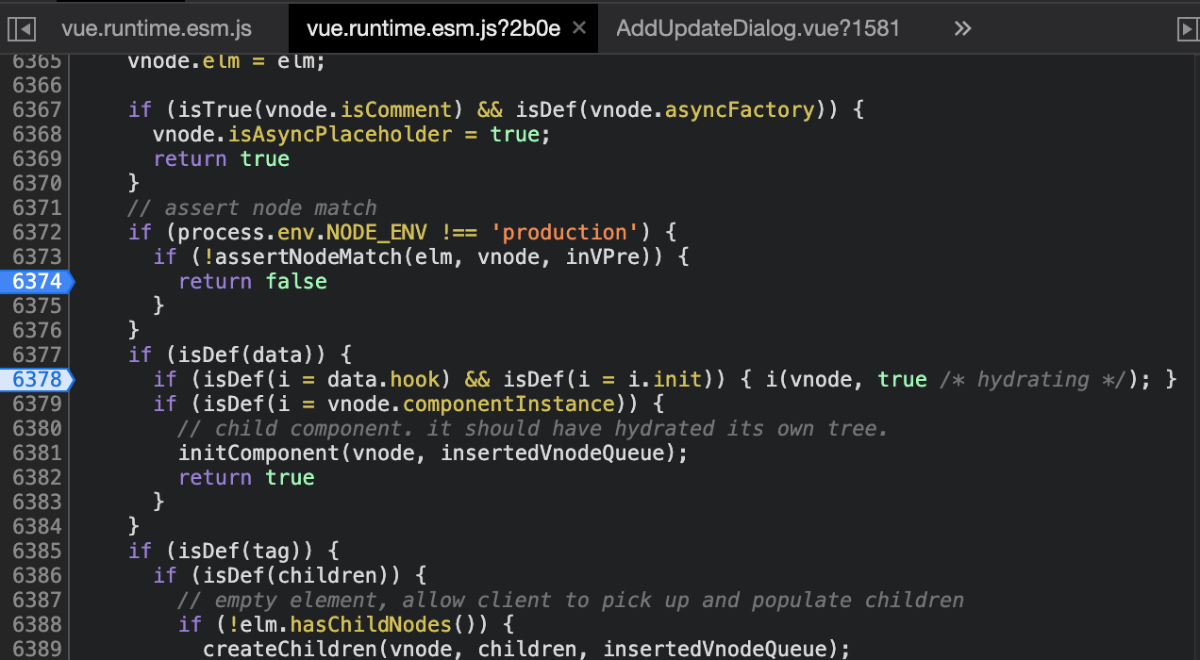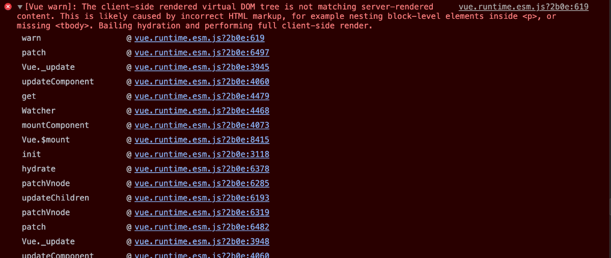 画像で言うと hydrate @ vue.runtime.esm.js?2b0e:6378 のところです。