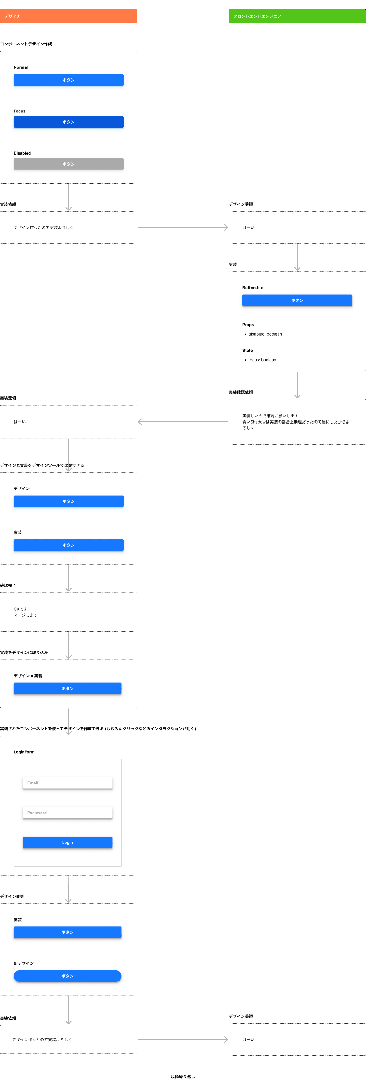 👷こういうデザインファイルの運用がしたい2023/09/02に公開1件FigmaReactデザインfrontendideaデザインファイルと実装を連携させて運用したい。 ↓の画像のような運用をしたい。 こういうのができるツールがあったら知りたい。 DiscussionHidetoshi Ota2023/09/04UXPin Mergeがよさそうだけど気軽に試せる金額ではなくつらい、、 https://www.uxpin.com/jp/pricing 返信を追加