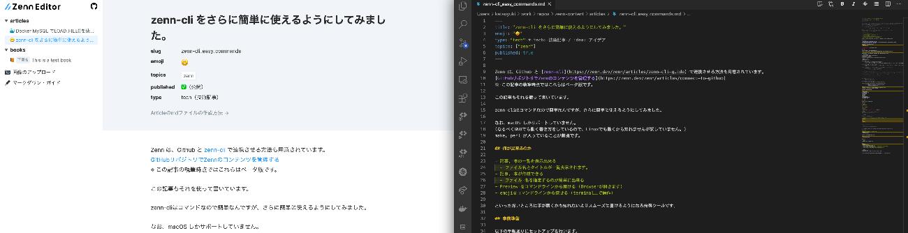 ですから zenn-cli 特有なところを少し楽にしただけなので人によってはあまり効果的ではないと思いますが、少しでも楽になりそうなら使ってみてください。