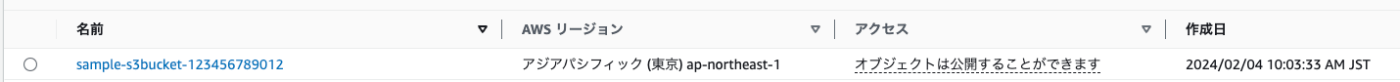- blockPublicAccessを記載してS3バケットを作成した結果