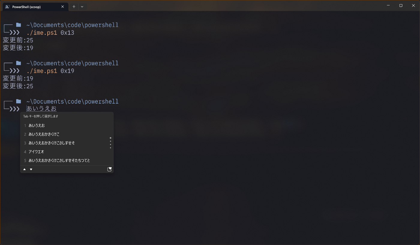 基本的にpwshしか使用しないため ,pwshのスクリプトでIMEを変更できれば対処はできそう.
