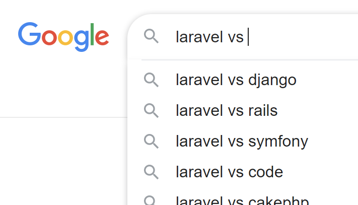 vsとたぶん類似の結果だと思いますが、laravel alternativeとかもよくやります!