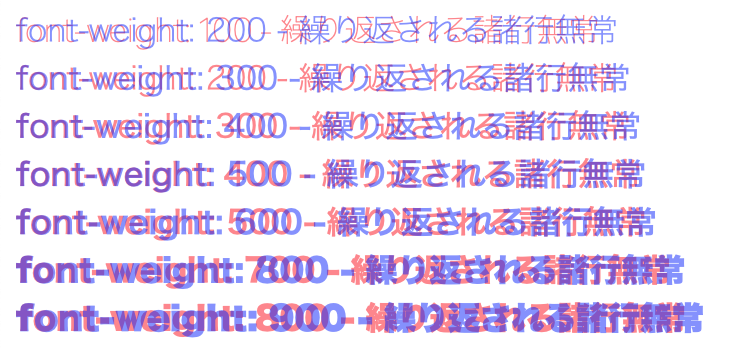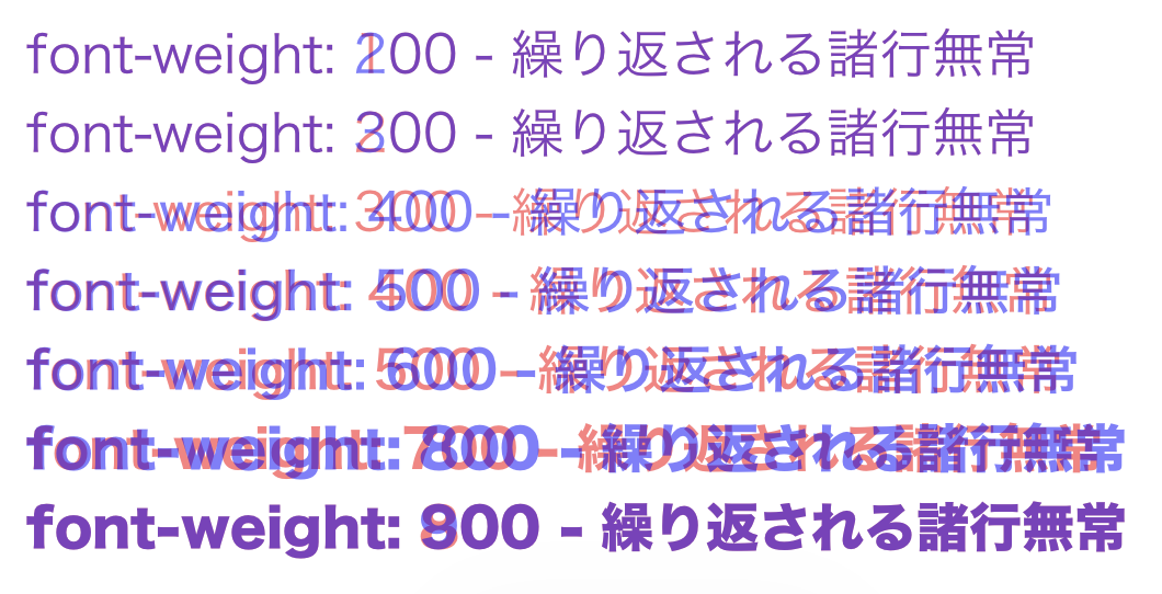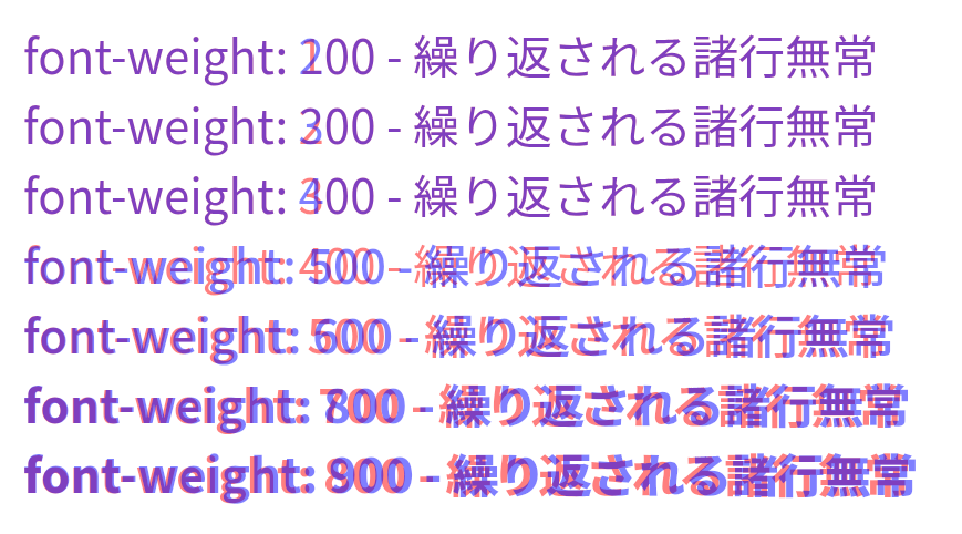 これらのすべての環境で明確にウェイトに差が出るのは 400, 500, 600, 700, 800 または 900 となります。