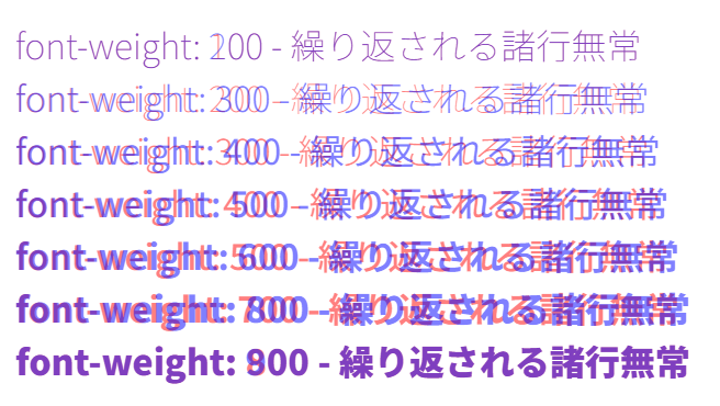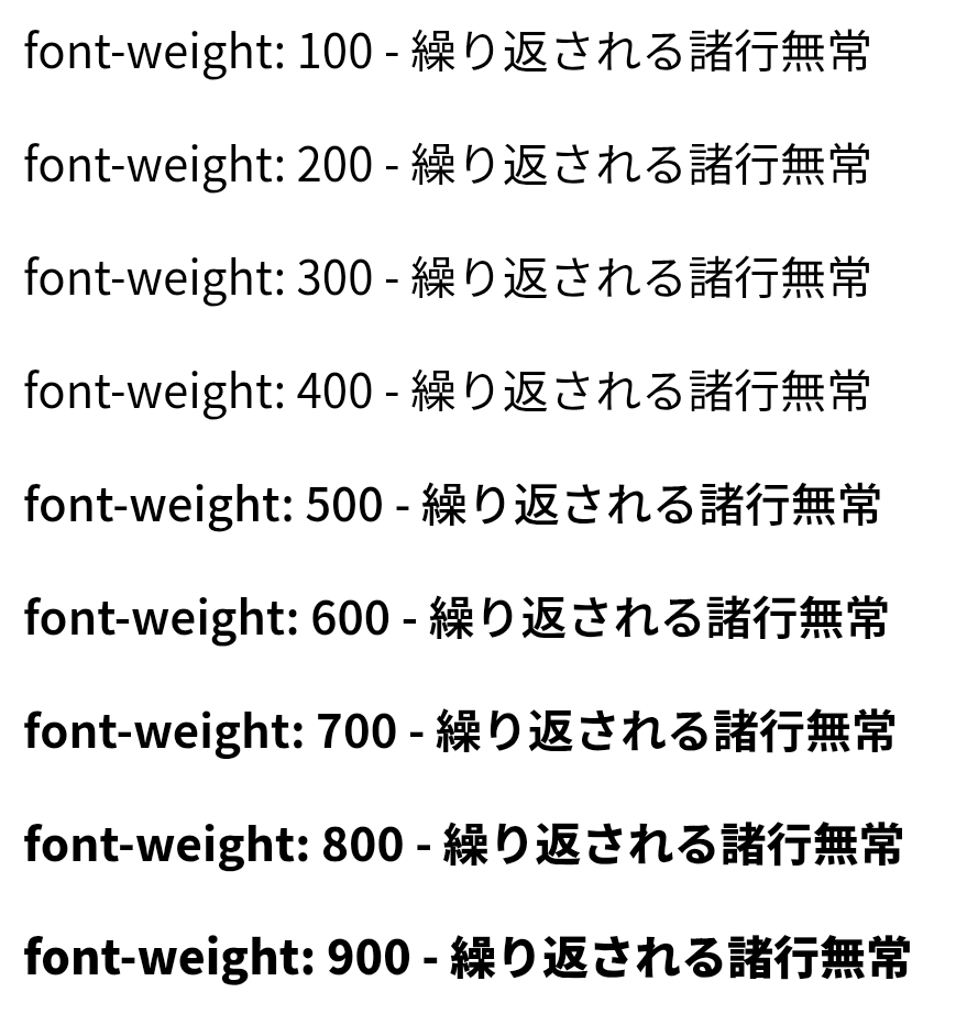 なかなか良さそうですが、100 から 400 のフォントが同じに見えます。