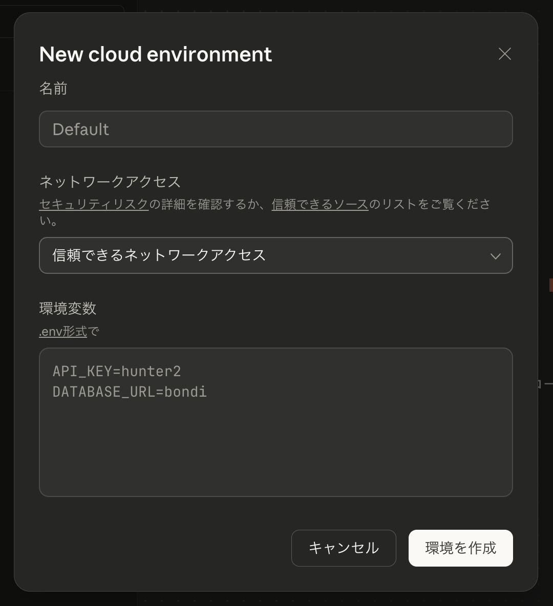 | セキュリティ | 環境変数の保管先はAnthropic。信頼判断が必要。 |