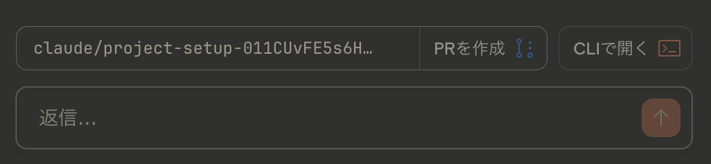途中でローカル作業に切り替えたいときは「CLIで開く」ボタンでコマンドを取得し、手元のターミナルで実行すれば、クラウドの変更内容をローカルに同期できます。