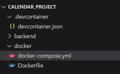 - 「"dockerComposeFile": "../docker/docker-compose.yml",」の設定があるので「docker-compose.yml」が読み込まれる。
