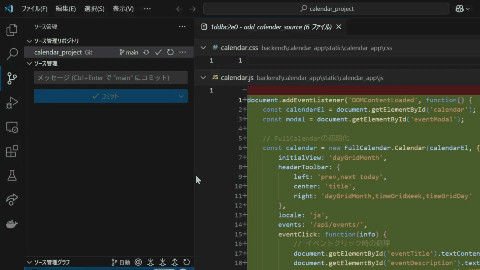 - 「ソース管理グラフ」に表示されている「コミット」のいずれかを選択すると