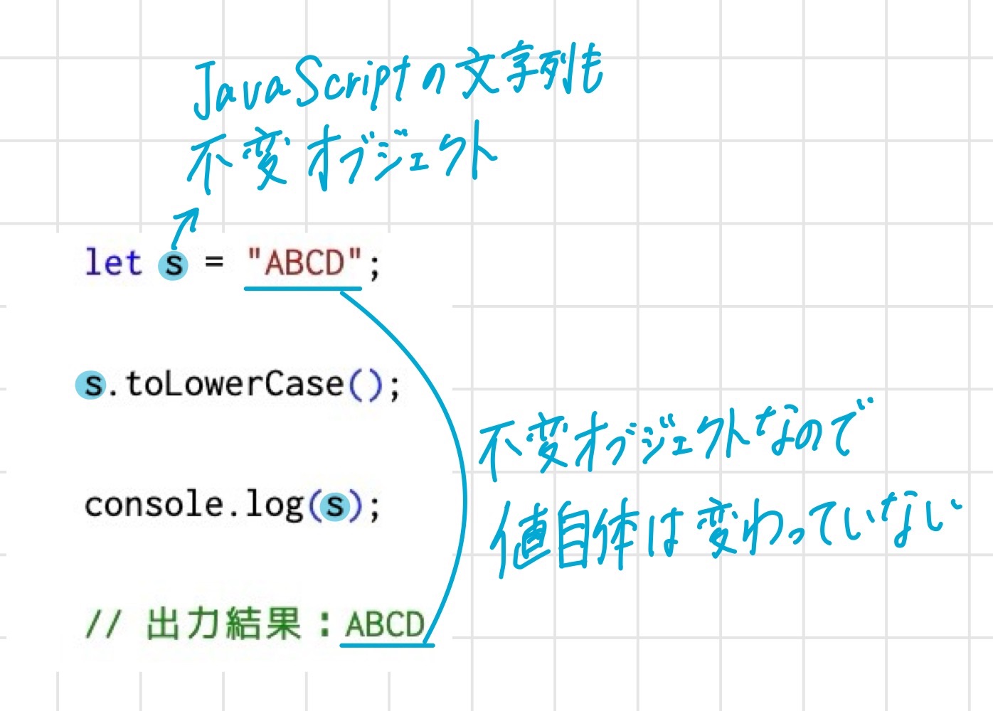 不変オブジェクトの一つである、JavaScriptの文字列オブジェクトを例とする
