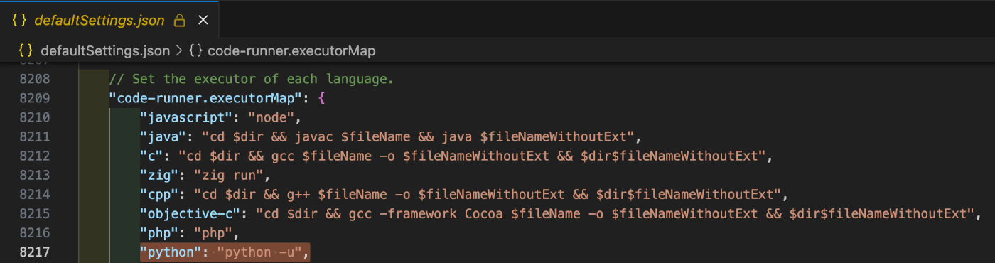 - ファイルのJSON オブジェクトに以下を追加することでデフォルトの設定を上書き