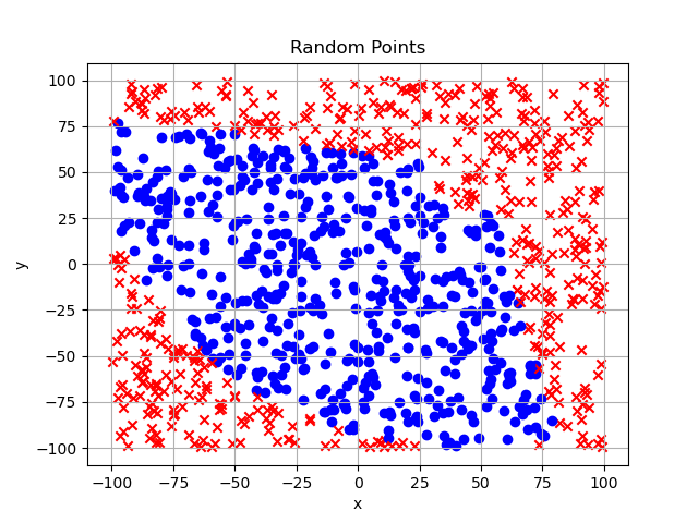上記資料に倣い、円内に任意の点が在るか判定するラムダ式を返す関数circleを書きました。