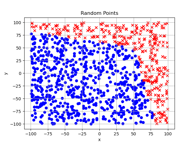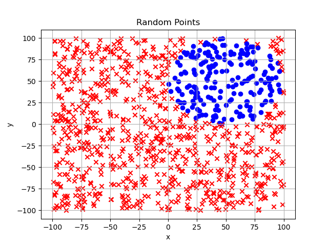 点群処理結果:(x:50,y:50)から左下角度以内に範囲を指定しています。