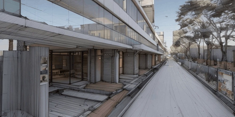 LoRAとは追加学習手法の名称です。StableDiffusionにおけるLoRAでは出力される画像の雰囲気だったり質感を学習した画像のものに寄せることができます。ここではLoRAによってスケッチ風の建築外観パースで追加学習されたモデル”CWG_archi_sketch_v1”を使用します。