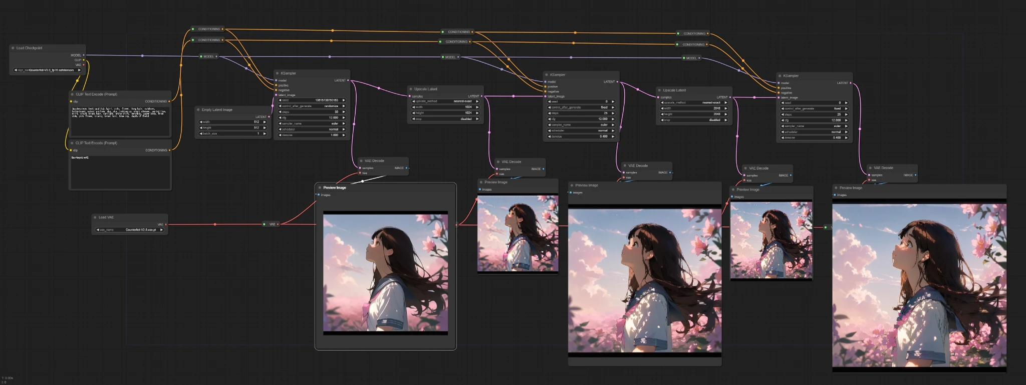最初は低解像度で生成して、それを引き延ばしながらデノイズして高解像度の画像を生成する、みたいなことができる。