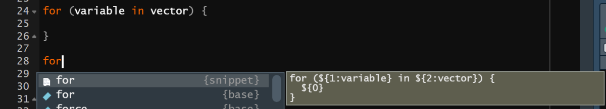 あらかじめ文字列を登録しておくことで頭文字のみを入力して残りを補完してくれる機能。自分オリジナルのスニペットは[Global Options]で登録可能。初心者のうちは必要なさそうだが、いつか使いこなしたい。
