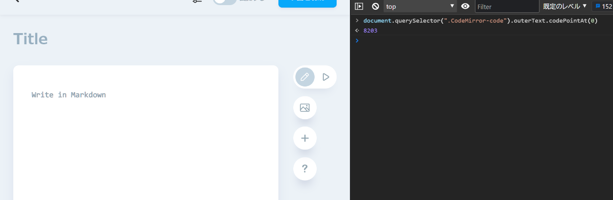 何も入力されていない空文字のはずなのに、8203という値が返ってきています。