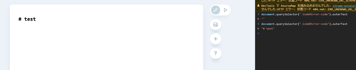 入力エディタに入力されている文字を取得するため下記のコードを実行してみます。