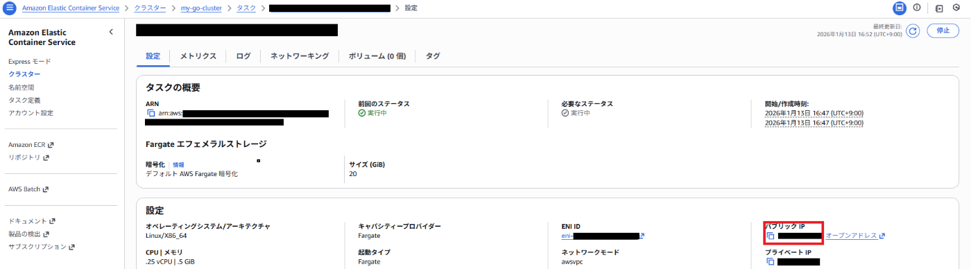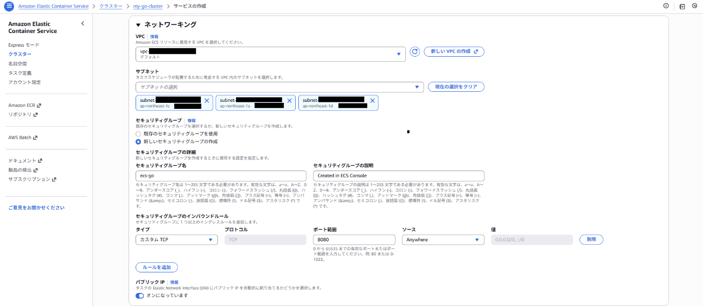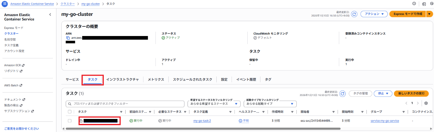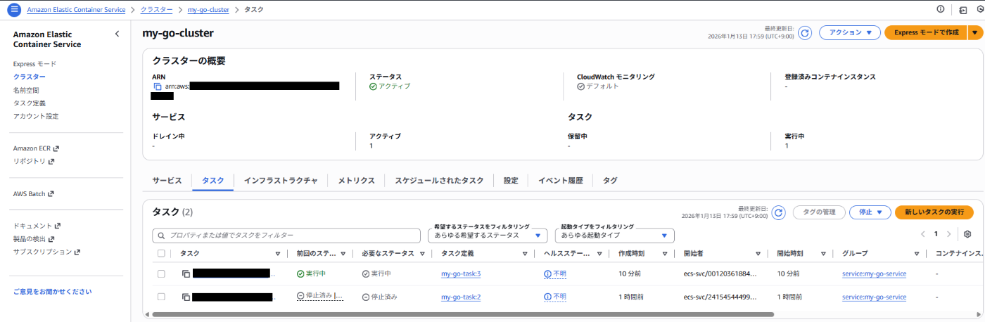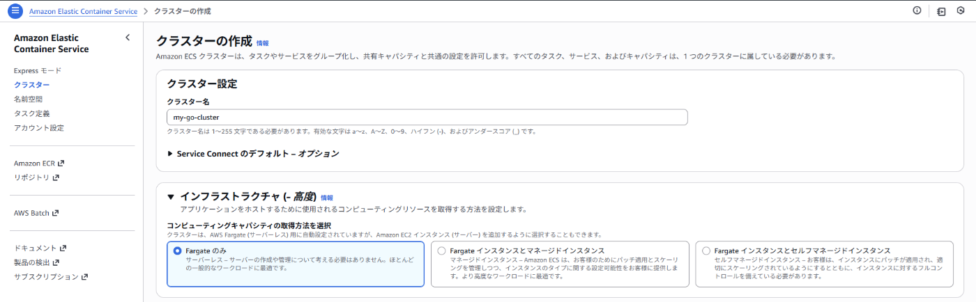 ECS_CLUSTER: my-go-cluster # ECSのクラスター名