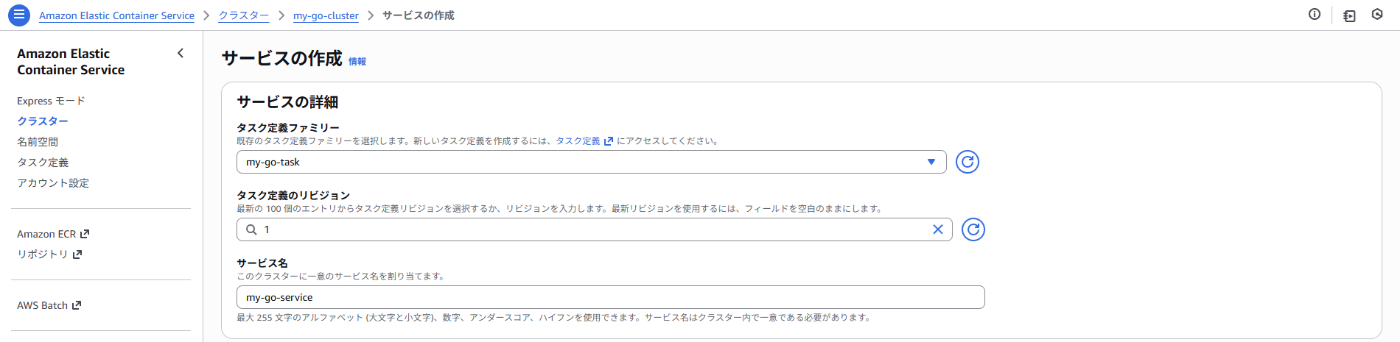 ECS_SERVICE: my-go-service # ECSのサービス名