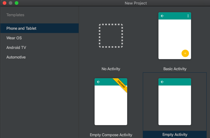 を選ぶとComposeを使う上でのbuild.gradleが大体整っているのでこちらを使おう。