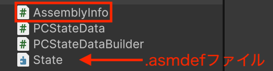 次の図を参考に.asmdefファイルと同じフォルダーにAssemblyInfo.csを作成