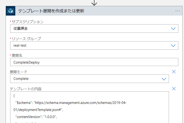 業務開始前に必要なリソースが出来上がっているように、Logic Apps の Azure Resouce Manager アクションを使って自動デプロイを設定しました。