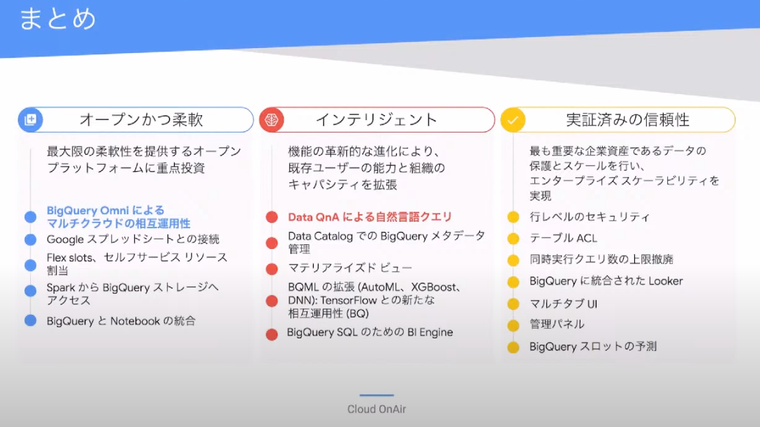 ただ、Google は BigQuery を利用している企業のフィードバックをベースに改善をしているため、