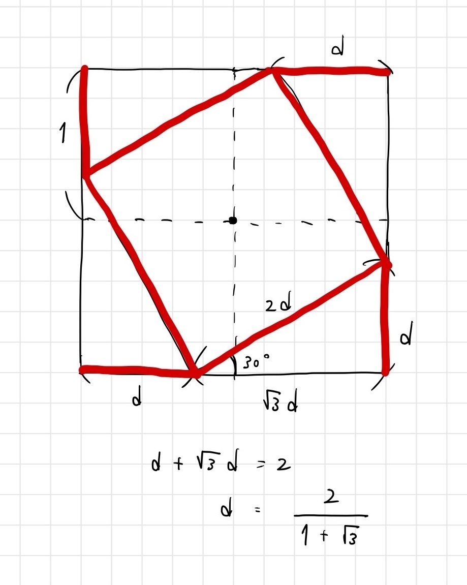 float d = 2.0 / (1.0 + sqrt(3.0));