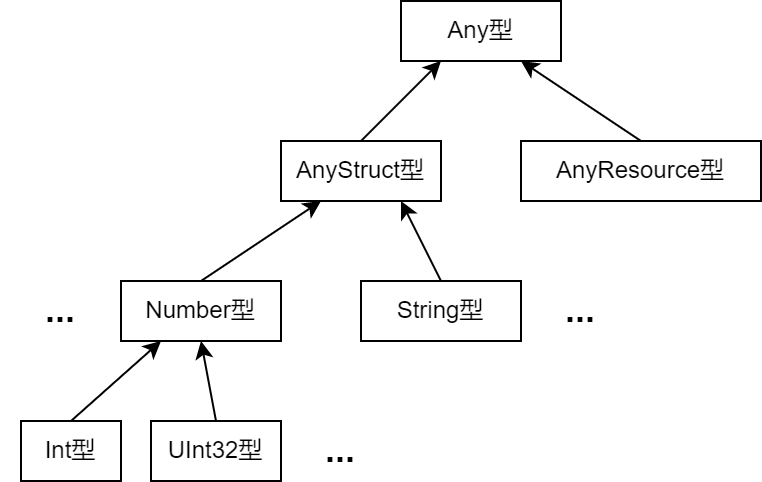 まず、Cadenceではこの表のとおり、全ての変数の型の親は **Any 型**で表現され、オブジェクトと呼ばれる。その配下に AnyStruct型と AnyResource型が位置する。プログラムで使われる普通の数値やオブジェクトは AnyStruct 型(ストラクト型)の子クラスで表され、プログラム内で扱われえる資産と呼べる数値やオブジェクトは AnyResource型(リソース型)の子クラスで表される。インタプリタ言語であるCadenceにはプリミティブ型のようなものはなく、整数 Int などの数値型も、文字列型である String といった型も AnyStruct 配下のストラクト型である。(Cadenceにはクラスという概念はないのだが、この記事では他言語だとクラス的だよねというものは便宜上クラスと呼んだりすることがあるのでご了承いただきたい。)