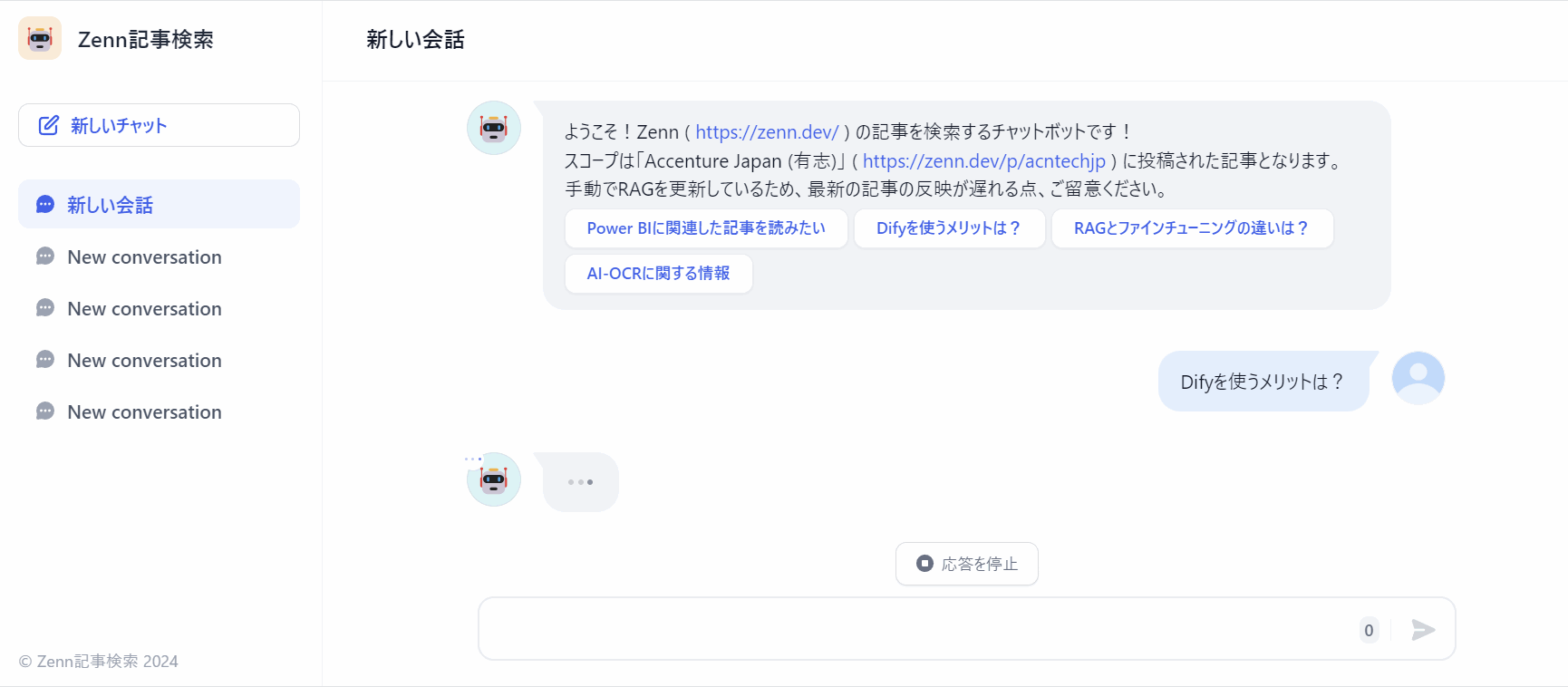 今回、Zenn記事の投稿数がだいぶ増えてきたのをきっかけに、Difyアプリを作りました。