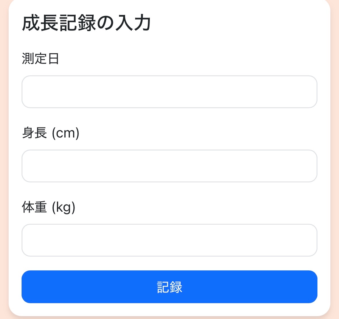 成長記録の新規作成画面