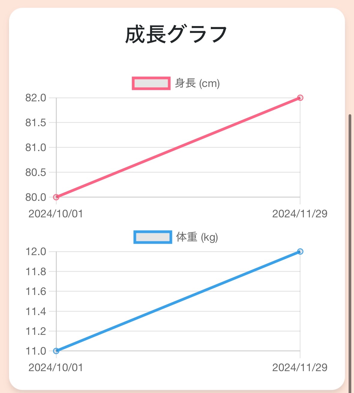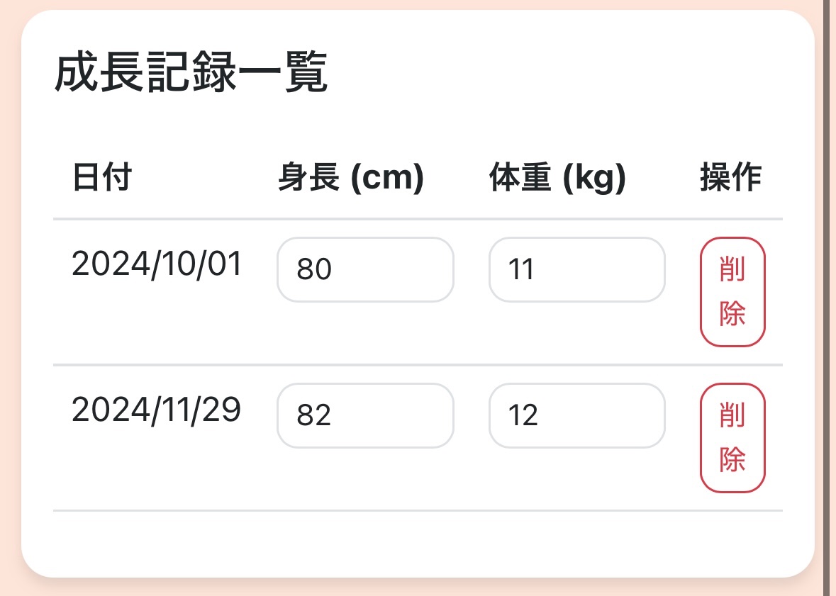続いて成長記録の一覧画面です。