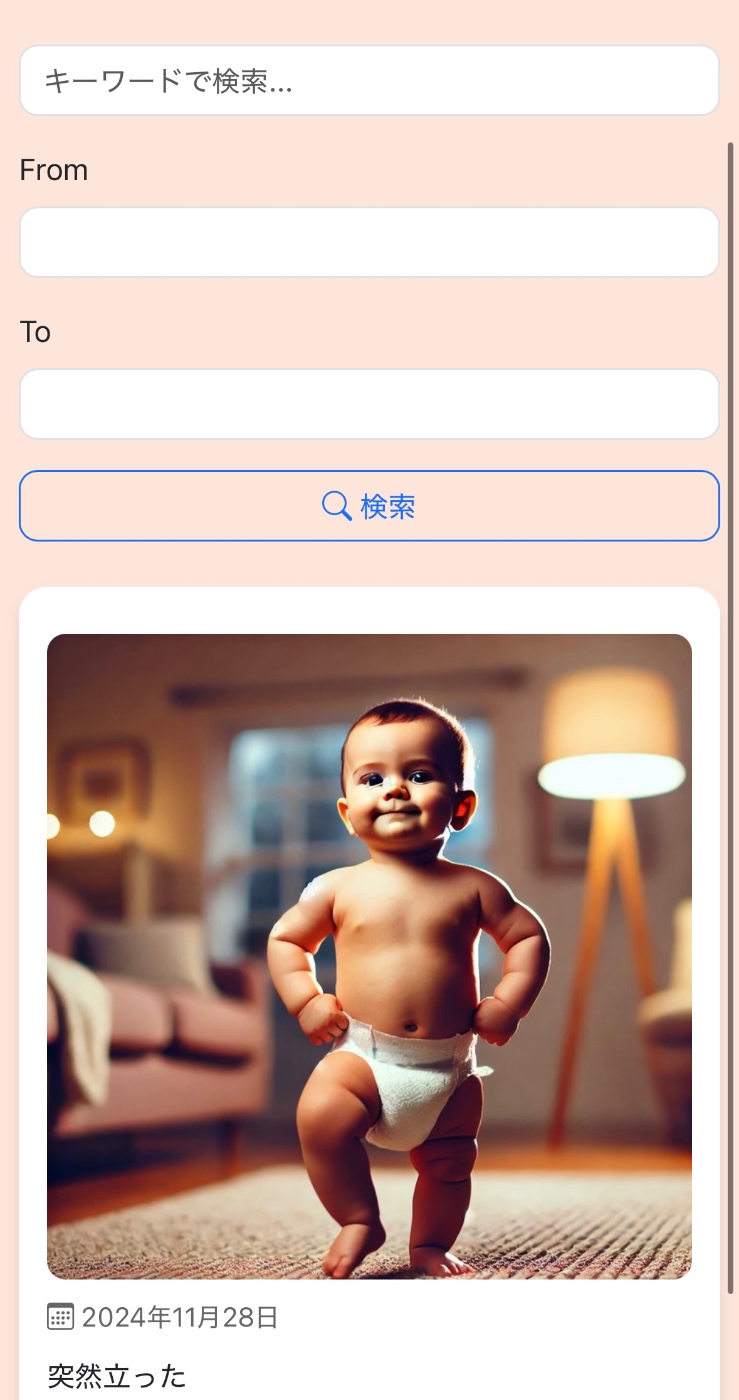 「子供の成長記録をつけたいです。一枚写真を毎日添付しながら、テキストを書いた日記にしてください。」 と書きました。