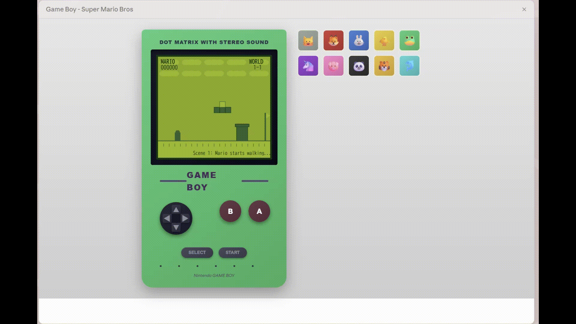 初期のゲームボーイ本体でスーパーマリオブラザーズ1の1-1を遊べるゲーム作って。