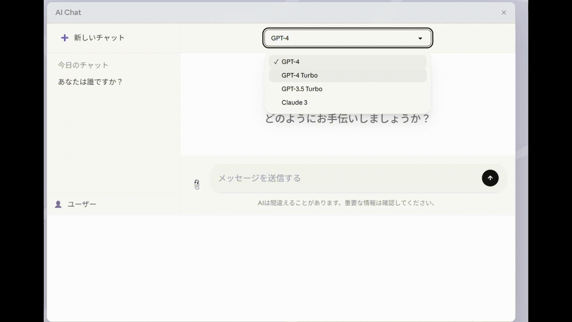 以下の条件で、ChatGPTとそっくりなAIチャットアプリを作って。