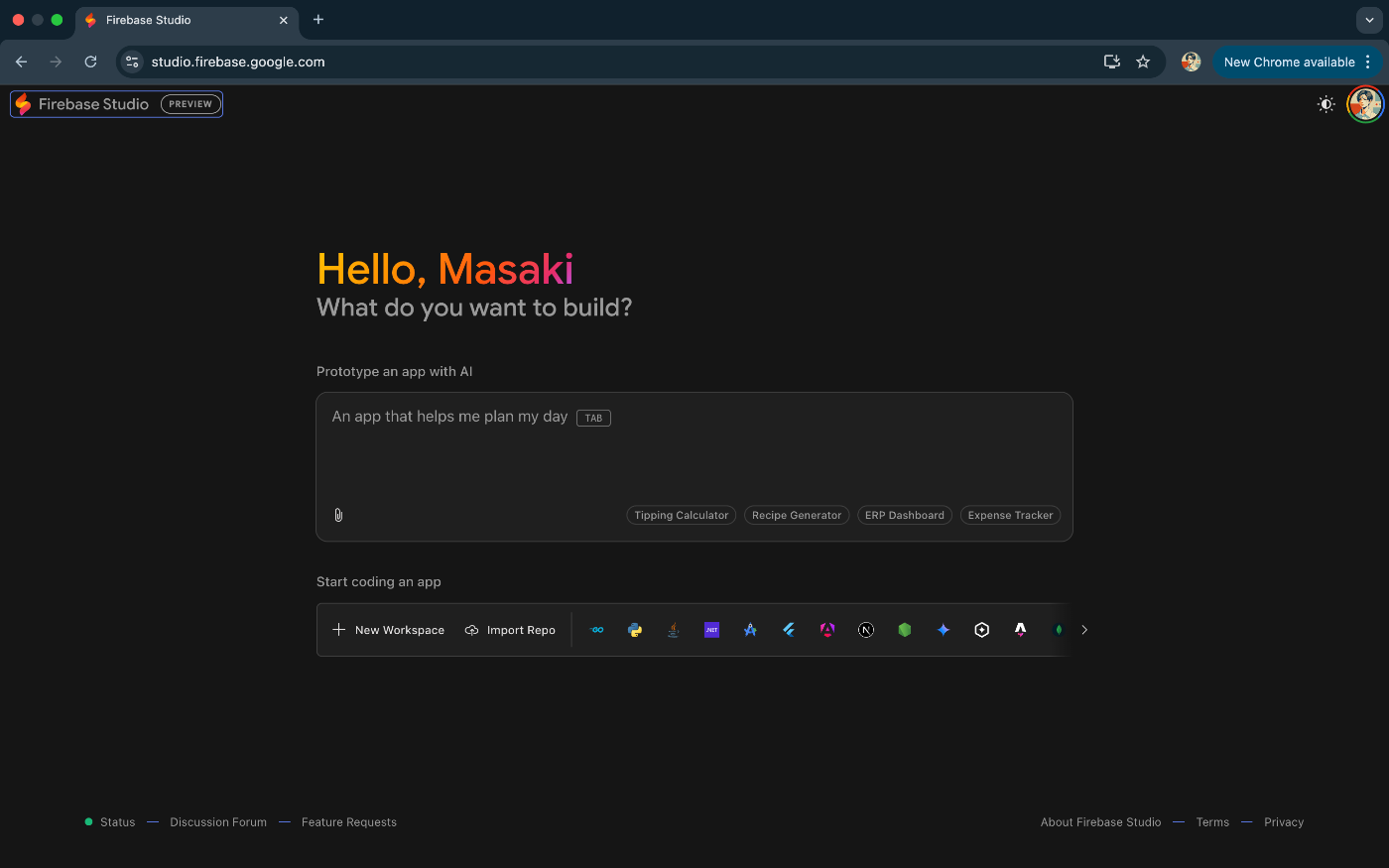 プログラミング初心者でも自然言語による指示でアプリ開発を始められる一方、経験豊富な開発者にとってもカスタム技術スタックをクラウド上で活用できる柔軟性を備えており、幅広い層のデベロッパーを対象としています。現在プレビュー版として公開されており、Googleアカウントがあれば誰でも試すことが可能です。