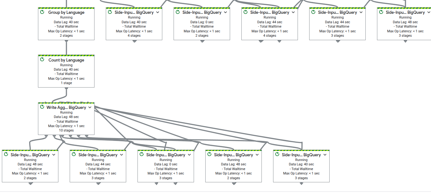 実行時のグラフビューを見ると、「Side-Input... BigQuery」というステップが複数表示されます。