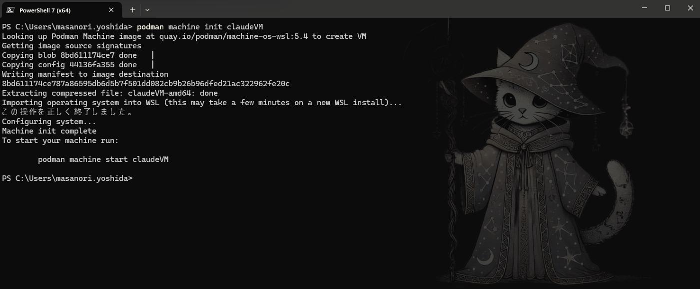 Write-Host "Podman machine 'claudeVM' を起動しています..."