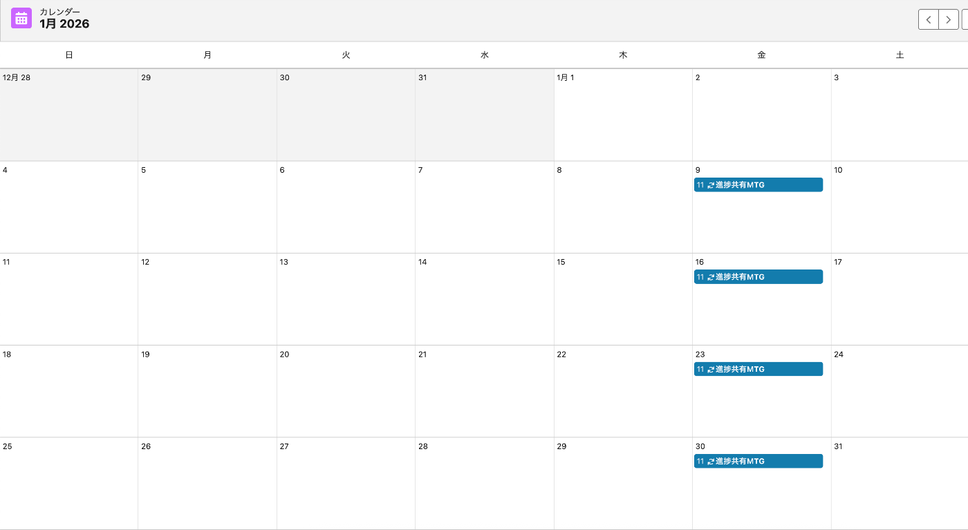 例:毎週金曜日に進捗共有MTGをするためSalesforceカレンダーで「繰り返し」設定