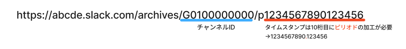 ※スレッドへ返信したい場合は、メッセージタイムスタンプも必要です。