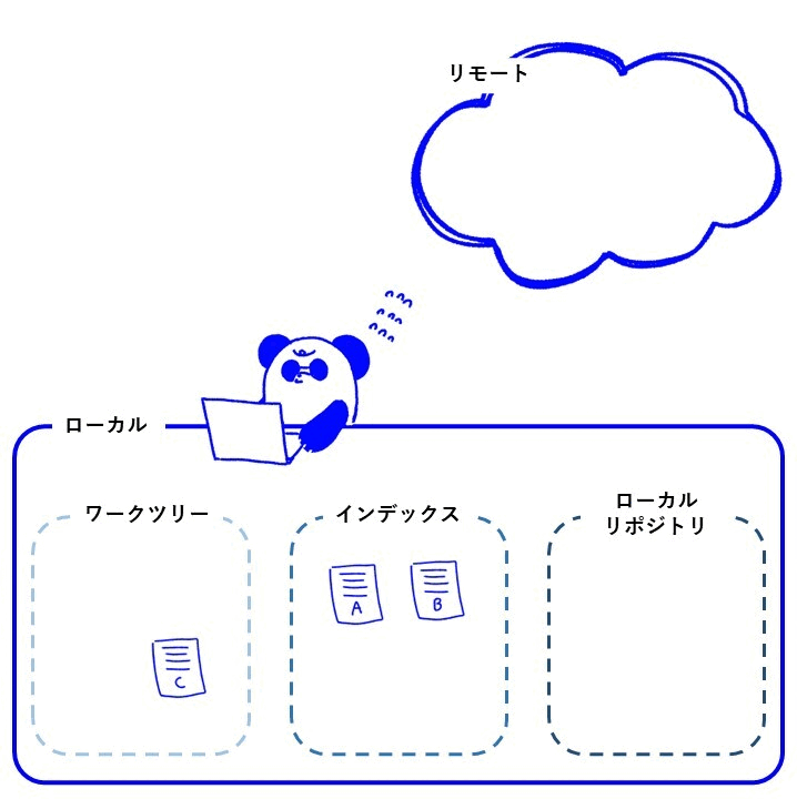 git commitはインデックスにあるファイルをローカルリポジトリに移動させるためのコマンドです。