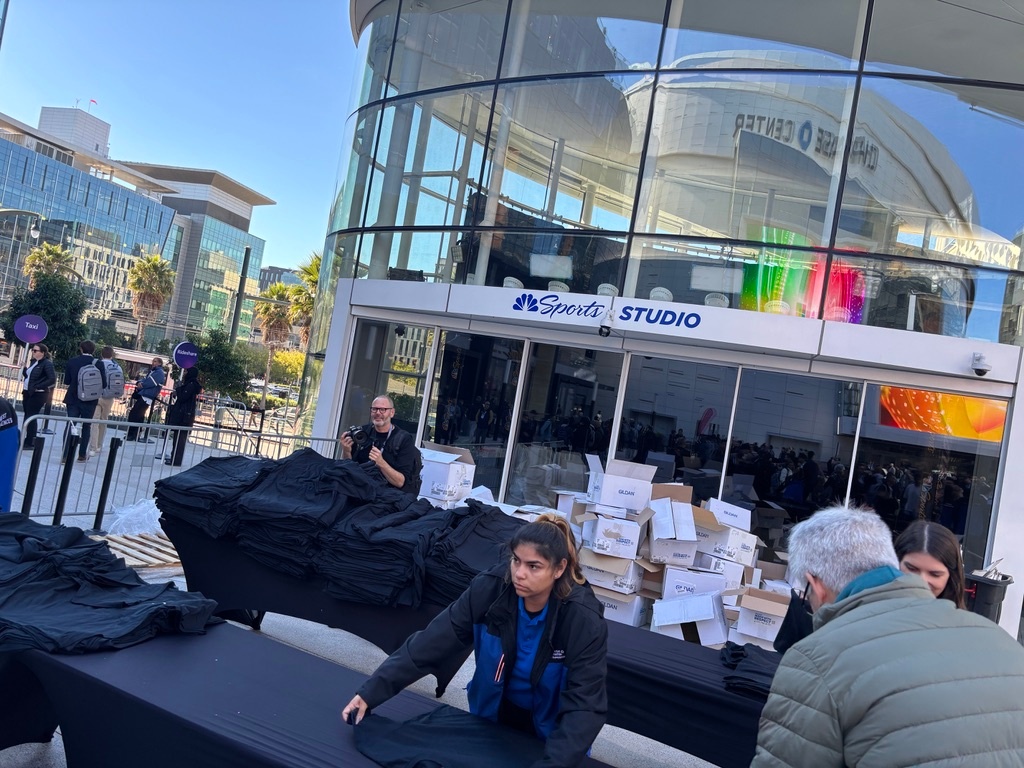 moscone centerの行列。建物を移るたびに荷物検査が必要