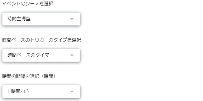 スクリプトエディタの「トリガー」をクリックし、以下のトリガーを追加しました。