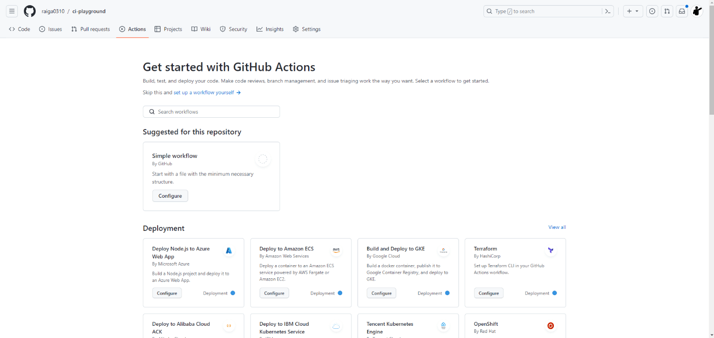 「Actions」タブでサジェストされたものを使ってみる