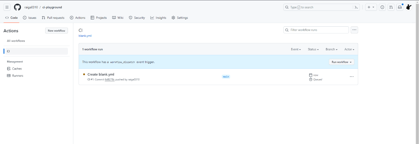 コミットしたあとに「Actions」>「CI」を見るとなにか走っている