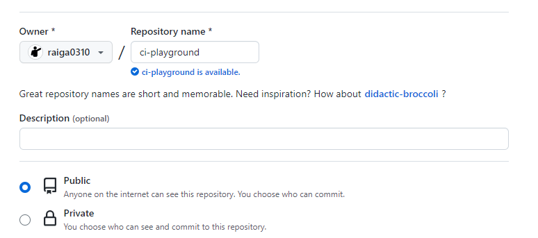 適当なリポジトリを新規作成する。(名前は何でも良い)