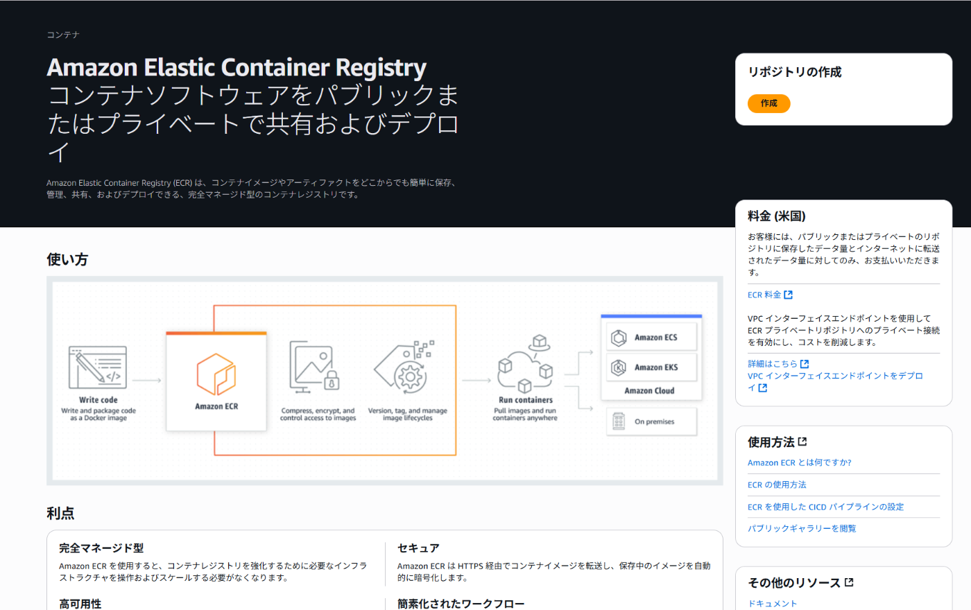 最初にECR君はコンテナイメージの倉庫という役割ができるみたいですね。