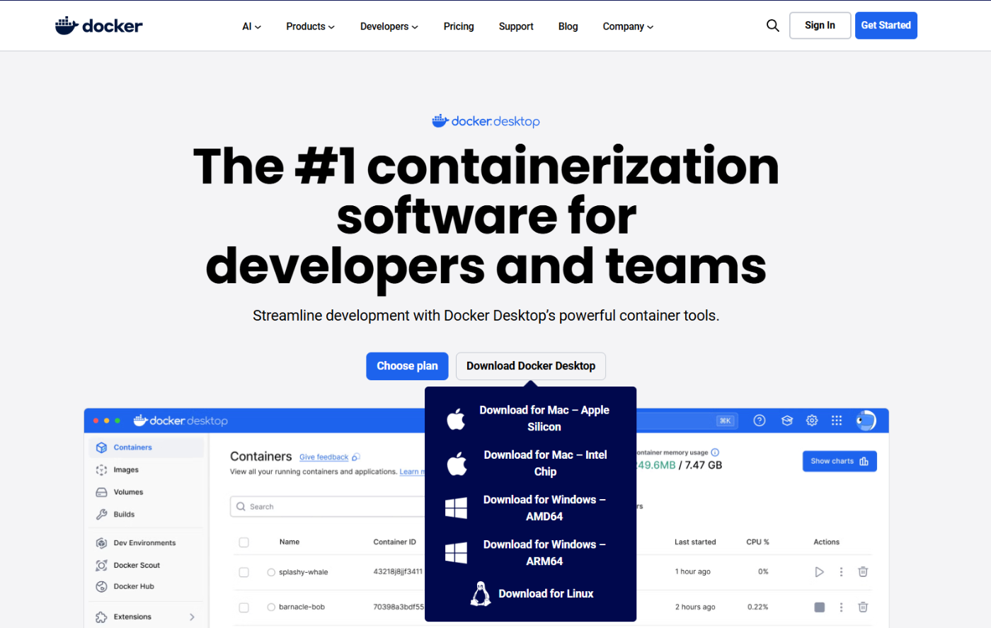 「コンテナ」を作ったり動かしたり管理するための プラットフォーム/ツール です。